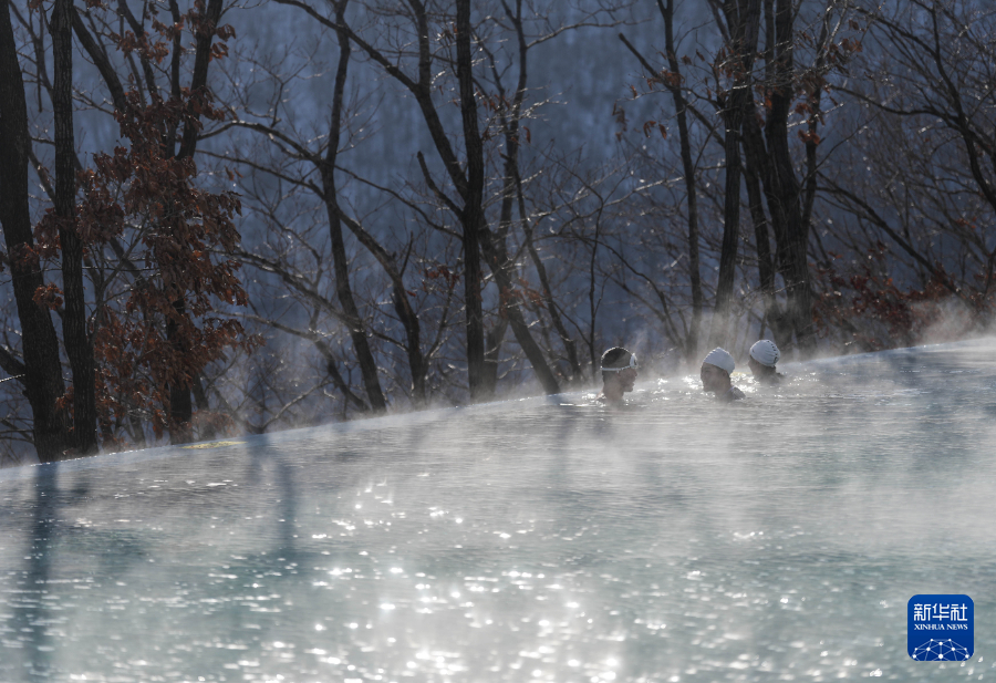 游客在遼寧省本溪滿族自治縣觀山湖一家酒店體驗室外溫泉。新華社記者 潘昱龍 攝