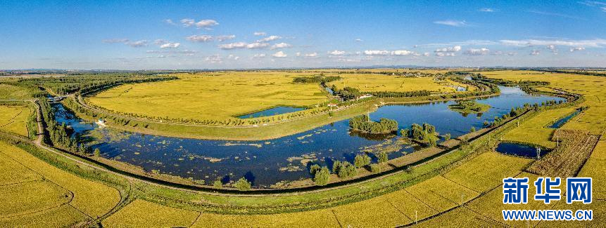 航拍沈陽稻田畫。新華網發 李永宏攝