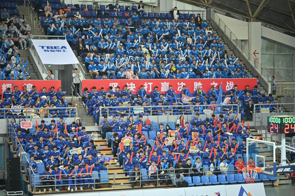 比賽間隙,賽事志愿者為球員撿球、為觀眾引路,他們來自鐵西體育館不遠處的沈陽市裝備制造工程學校。學校與華晨寶馬、貝卡爾特等企業合辦的“訂單班”,讓焊接、工業機器人技術等專業的學生畢業即上崗。同樣熱愛籃球的他們,或許是未來“廠BA”的閃耀新星。