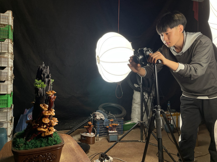 在營口市老邊區柳樹鎮東柳村,返鄉大學生任嘉輝通過直播售賣靈芝。新華社記者武江民攝