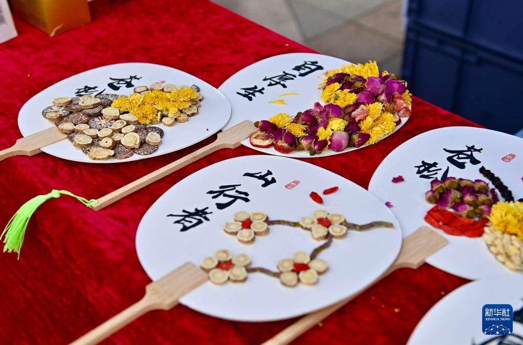 這是5月29日在岫巖縣中醫藥文化夜市現場拍攝的用中藥材制作的工藝品。