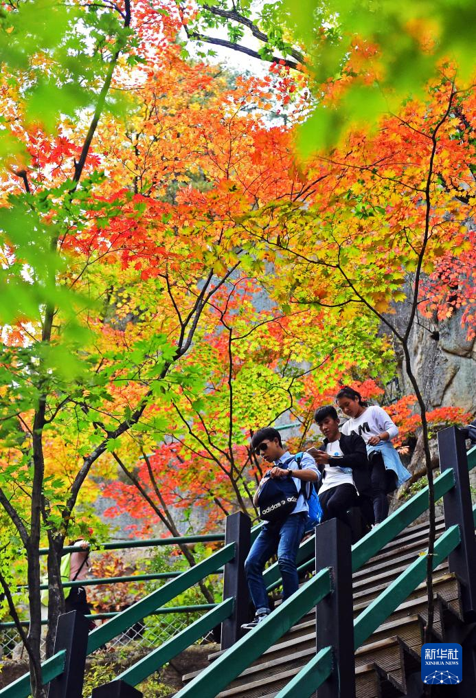 游客在楓林谷景區游玩。新華社記者楊青 攝
