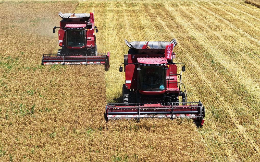 “合作社去年開始試種春小麥,效益很好。今年我們擴大了種植面積,眼下500畝小麥迎來了豐收,畝產可達750斤?!焙献魃缋硎麻L趙玉國介紹,兩茬作物一畝地可收入1600多元,效益十分可觀。