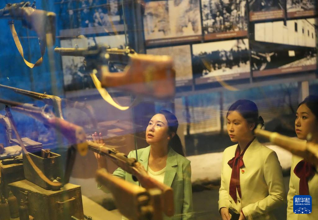 7月28日,在“九一八”歷史博物館,石任華(左)和同事交流展陳和講解融合技巧。