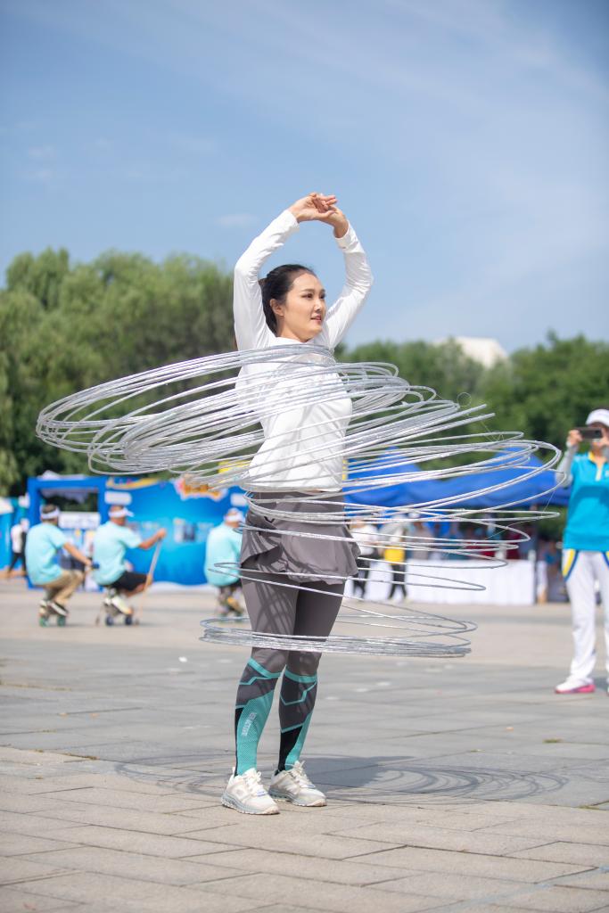為滿足群眾多元化健身需求,活動現場設置霹靂舞、廣場舞、少兒跆拳道展演、花式跳繩、趣味毽球、速度輪滑、獨輪車、徒步走、籃球、抖空竹、健身操等展演活動,吸引近800人參與,年齡最小的僅有5歲,最年長的近70歲。此外,現場還設置國民體質監測、科學健身指導、體育法宣傳、體彩即開票銷售等活動。