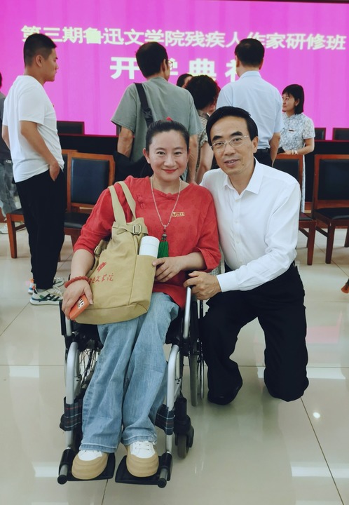 單丹與中國殘聯主席程凱在魯迅文學院合影。受訪者供圖