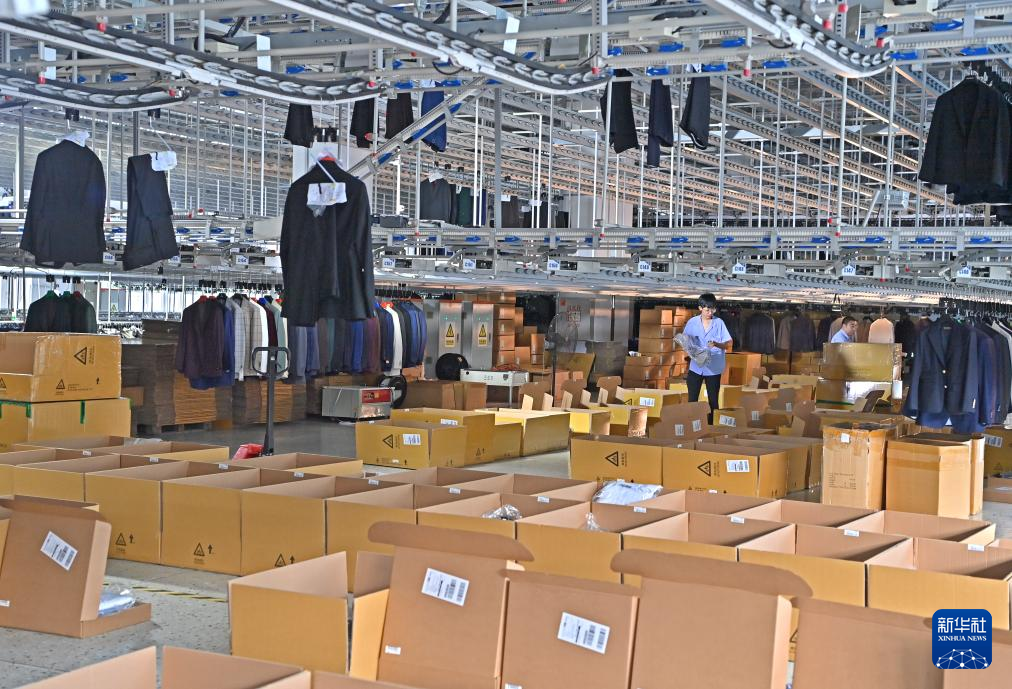 這是8月28日拍攝的遼寧省大連市大楊集團的西服生產車間。大楊集團運用數智化技術,實現定制西服批量化生產。