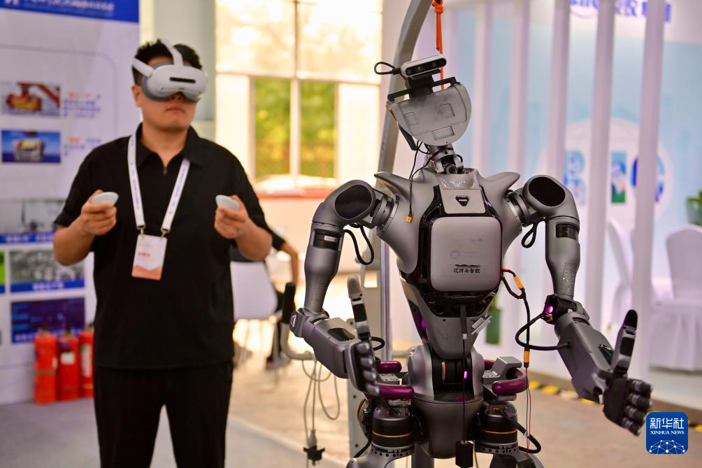 9月5日,在沈陽的2025全球工業互聯網大會的展覽區現場,中國科學院沈陽自動化研究所的機器人工程師在調試具身智能操作系統。