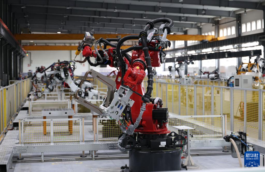 這是8月27日在新松機器人自動化股份有限公司車間拍攝的工業機器人。