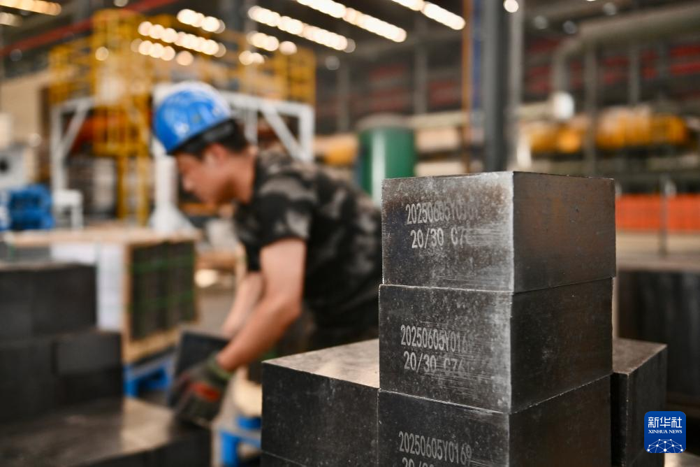 6月6日,工人在海城利爾麥格西塔材料有限公司搬運鋼包鎂碳磚。近年來,遼寧省海城市的菱鎂產業摒棄粗放發展的老路,向集約高效、綠色智能、全產業鏈方向高質量發展。