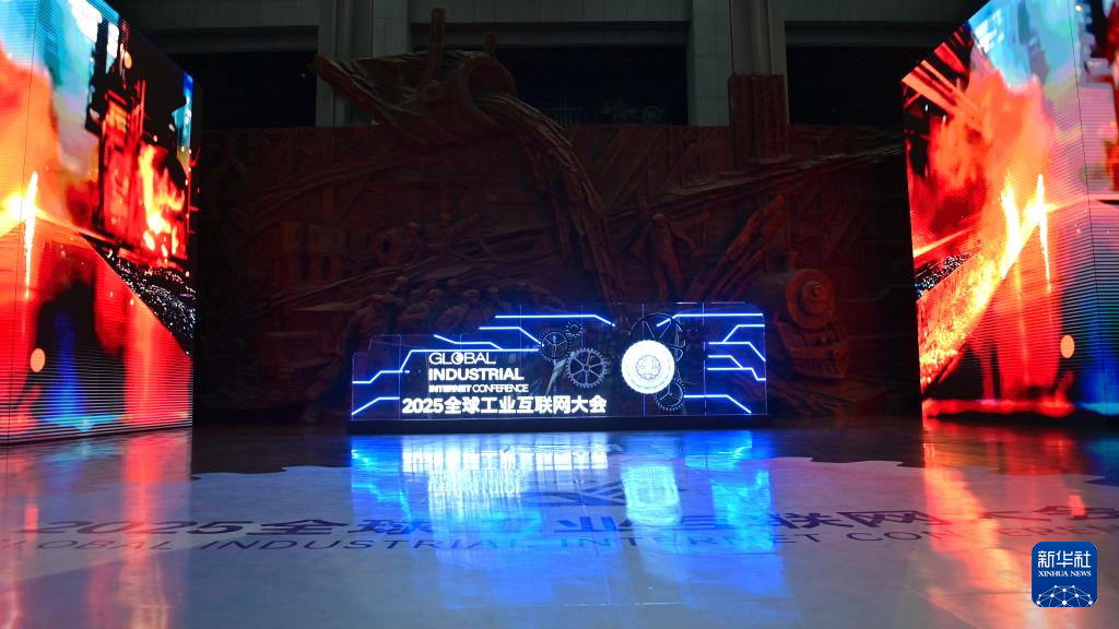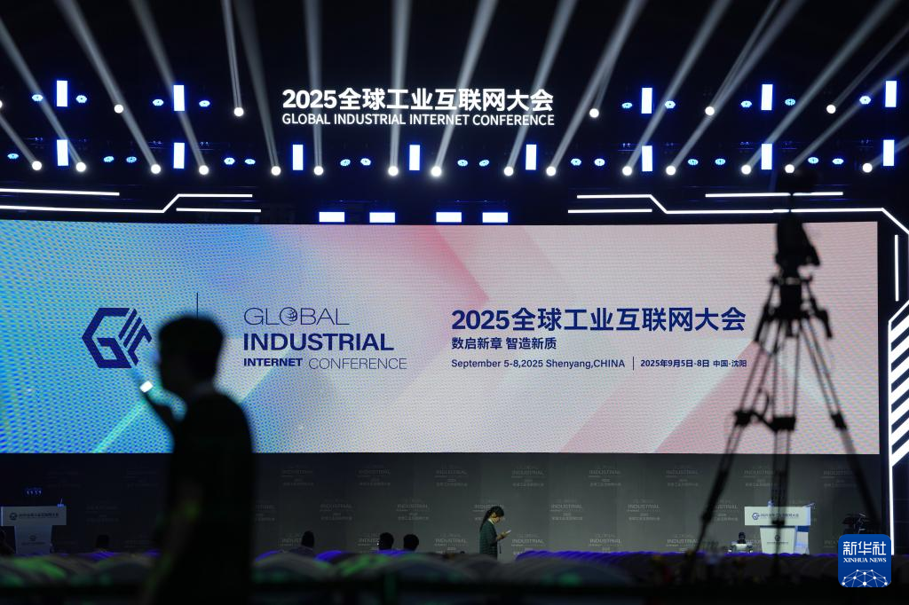 9月5日,工作人員在沈陽舉行的2025全球工業互聯網大會的主會場。