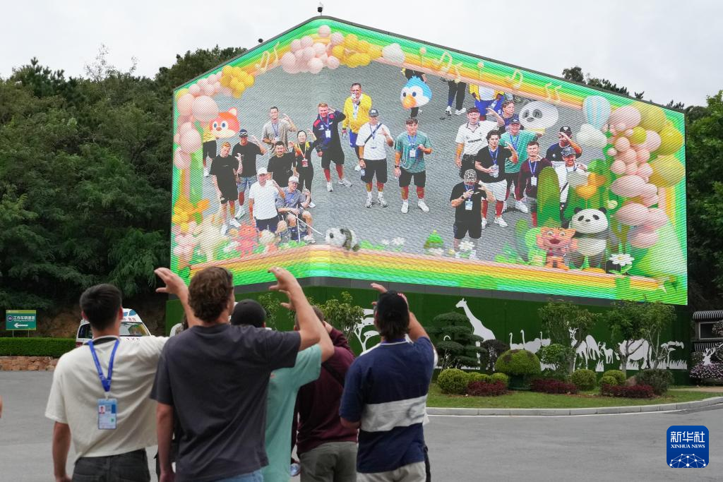 9月23日,球員、教練員、裁判員等在大連森林動物園觀看裸眼3D互動大屏。