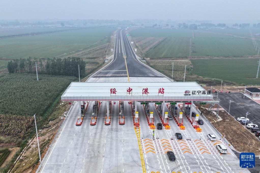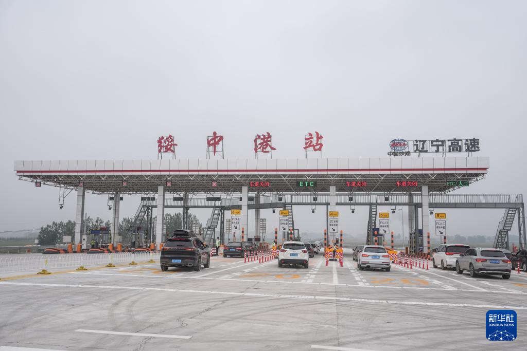 9月27日,車輛從凌綏高速綏中港站收費口進入高速公路(無人機照片)。