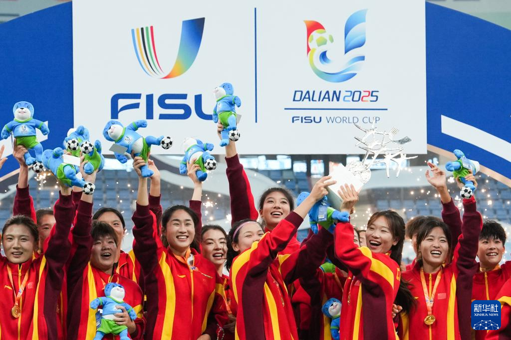 9月27日,冠軍上海體育大學女足在頒獎儀式上。新華社記者 鄭煥松 攝