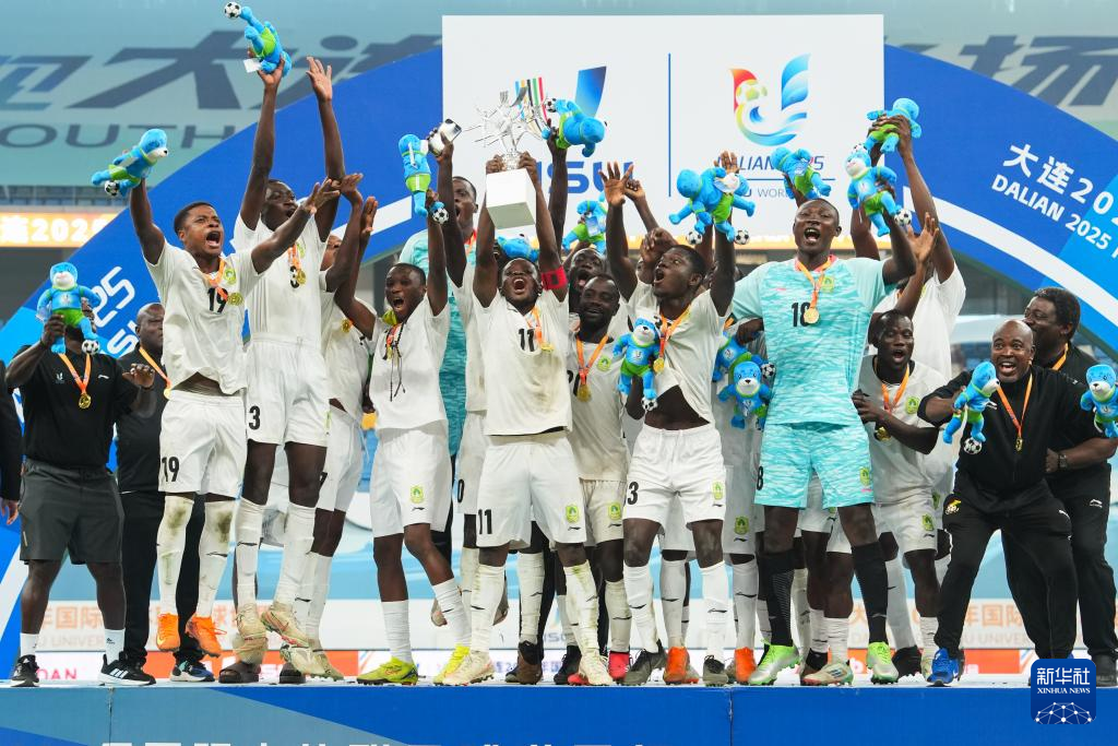 新華社大連9月28日電(記者許仕豪、張博群)28日,國際大體聯足球世界杯迎來收官之戰。加納發展研究大學隊以2:1逆轉擊敗巴西保利斯塔大學隊,獲得男子組冠軍。
