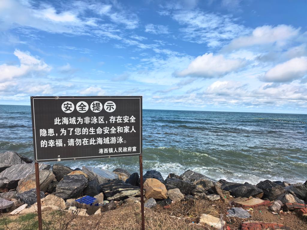威海市榮成市港西鎮人民政府在一海域提示游客,請勿在此游泳。新華社記者 劉藝淳 攝