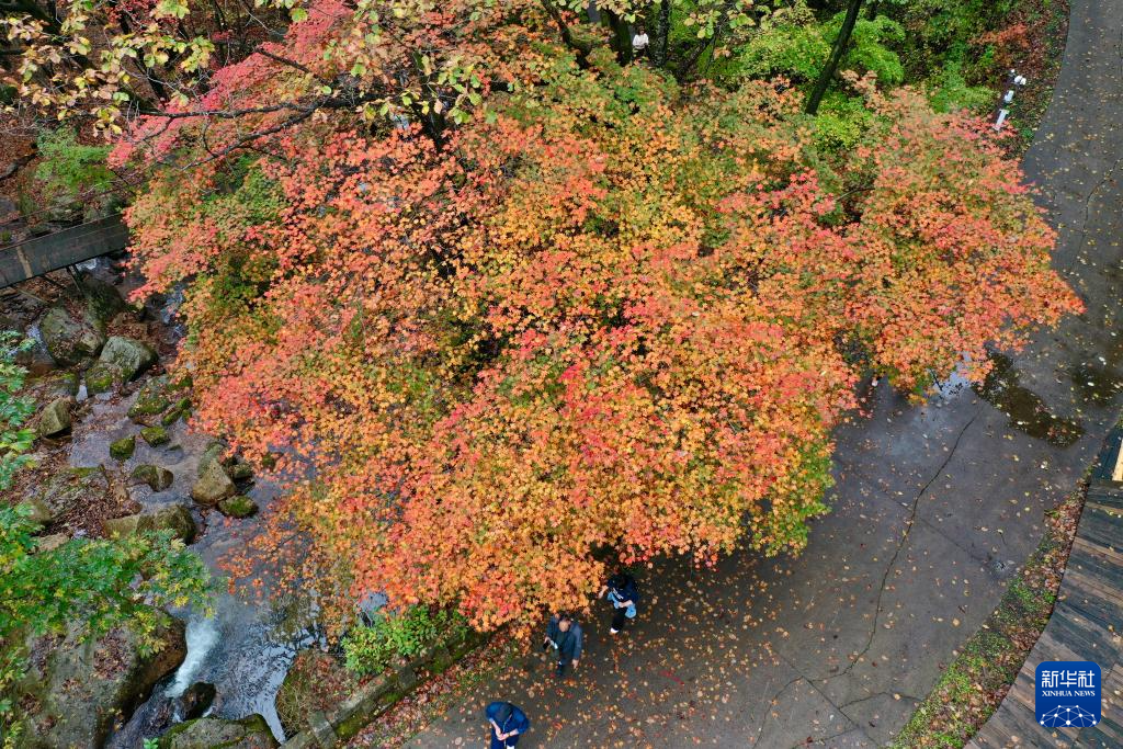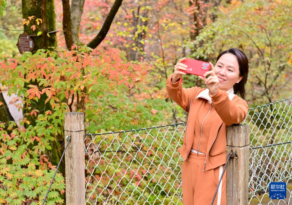 近日,遼寧省丹東市寬甸滿族自治縣的天橋溝景區迎來秋季楓葉觀賞期,滿山秋色吸引游客前來觀景游玩。