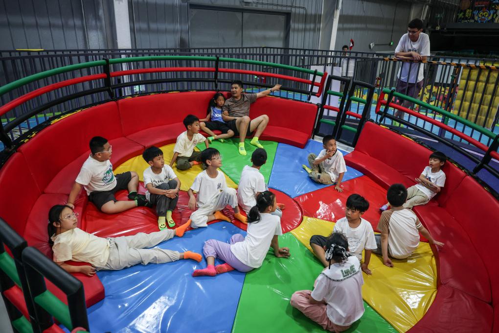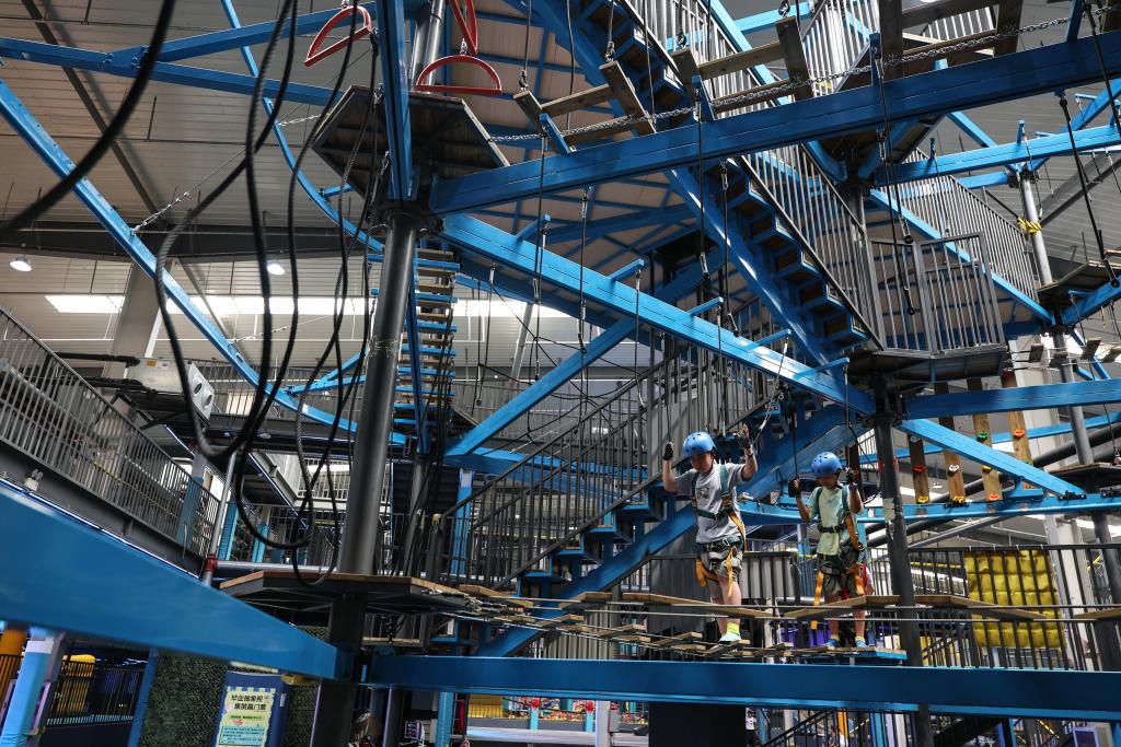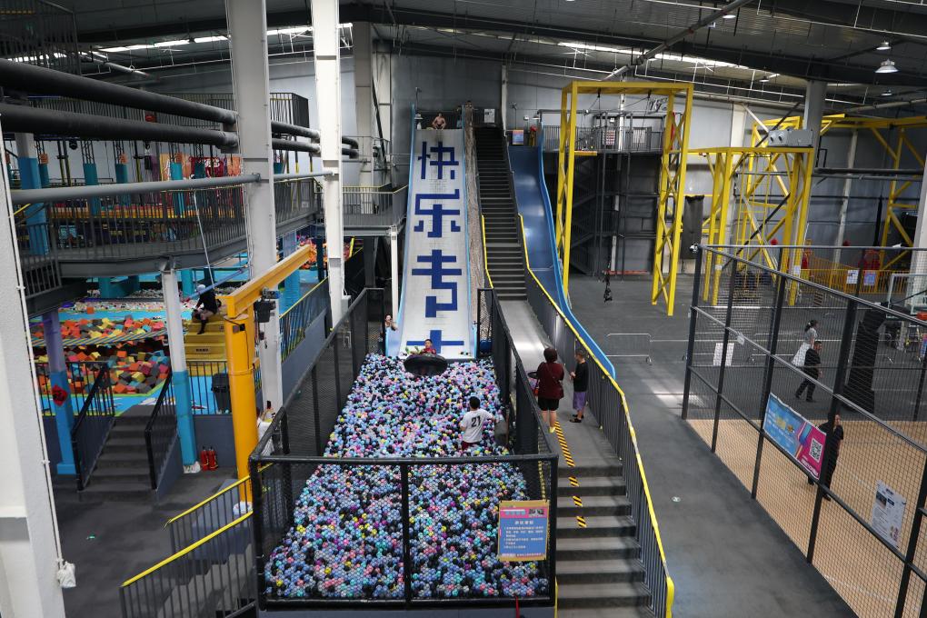 8月20日,小朋友在沈陽糧倉文化產業創意園內的“快樂專+”游樂場體驗游樂項目。  新華社記者 潘昱龍 攝