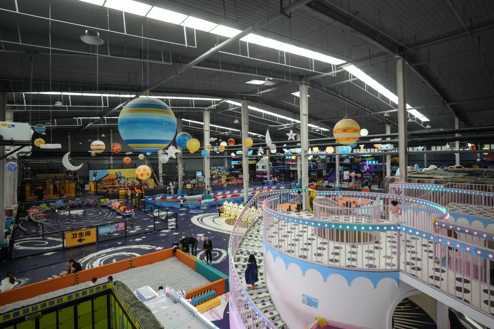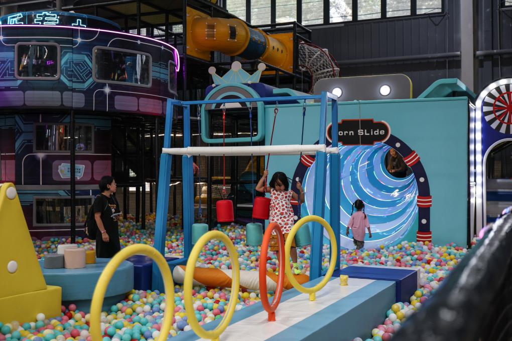 10月8日,小朋友在沈陽糧倉文化產業創意園內的“快樂專+”游樂場體驗游樂項目。  新華社記者 潘昱龍 攝