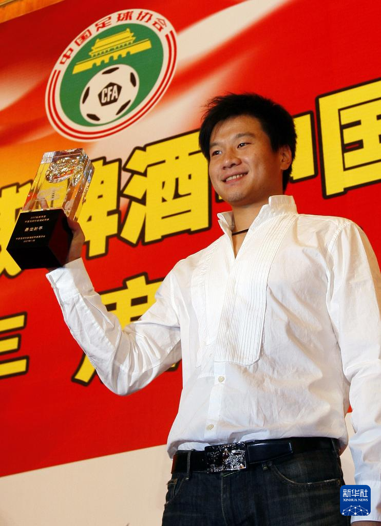 2007年11月17日,山東魯能隊球員李金羽在頒獎典禮上。當日,中國足球協會在上海舉行中超聯賽頒獎典禮,李金羽榮獲2007年中國足球超級聯賽“最佳射手”稱號。 新華社記者 凡軍 攝